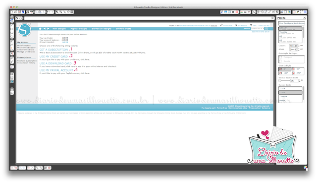 obs4.: essa é a única forma de comprar projetos sem possuir cartão internacional. Para comprar créditos, acesse o site da Silhouette Brasil.
