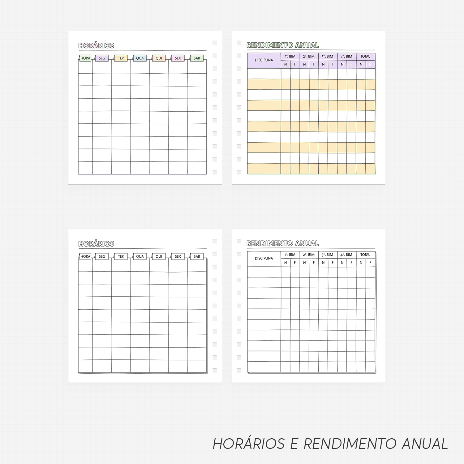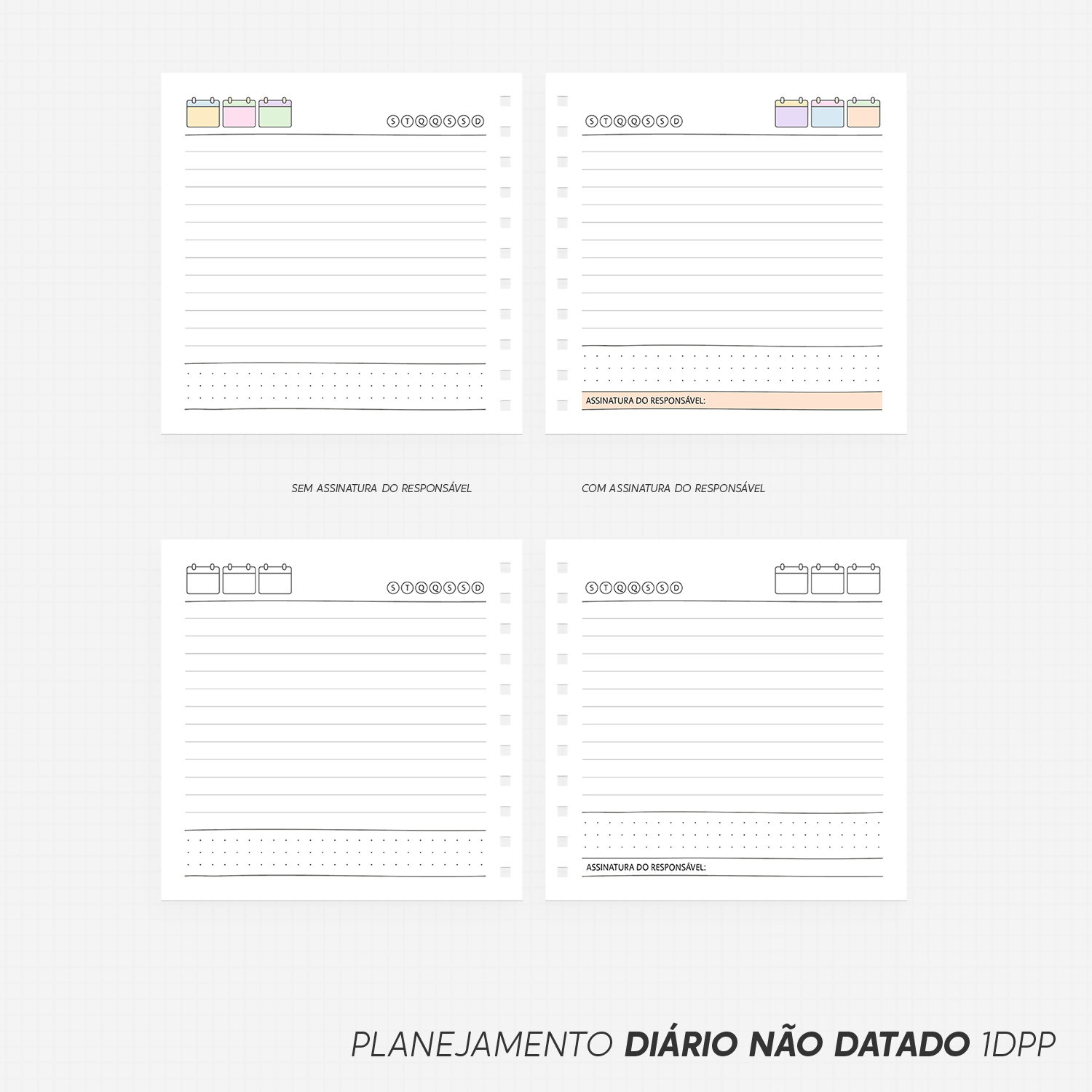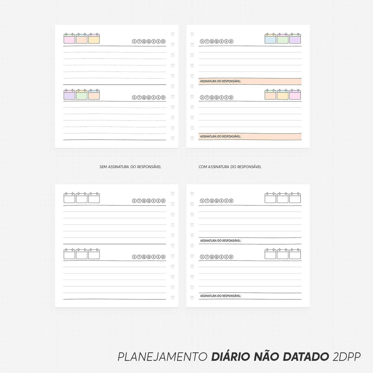 - Planejamento diário (nas versões com espaço para assinatura e sem)