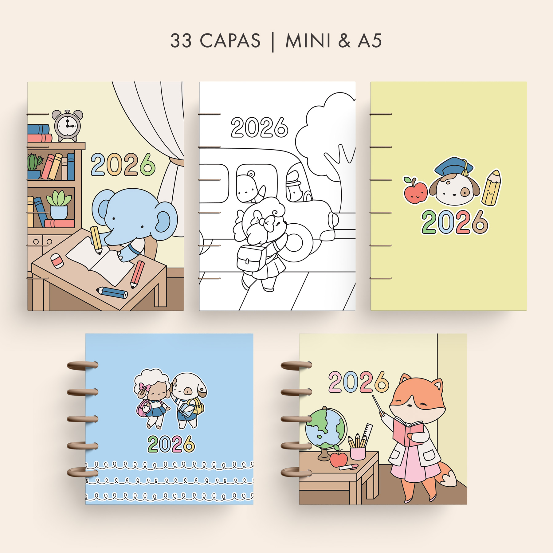 - 33 modelos de capa (A5 e/ou mini | com e sem aba) em formato .jpg