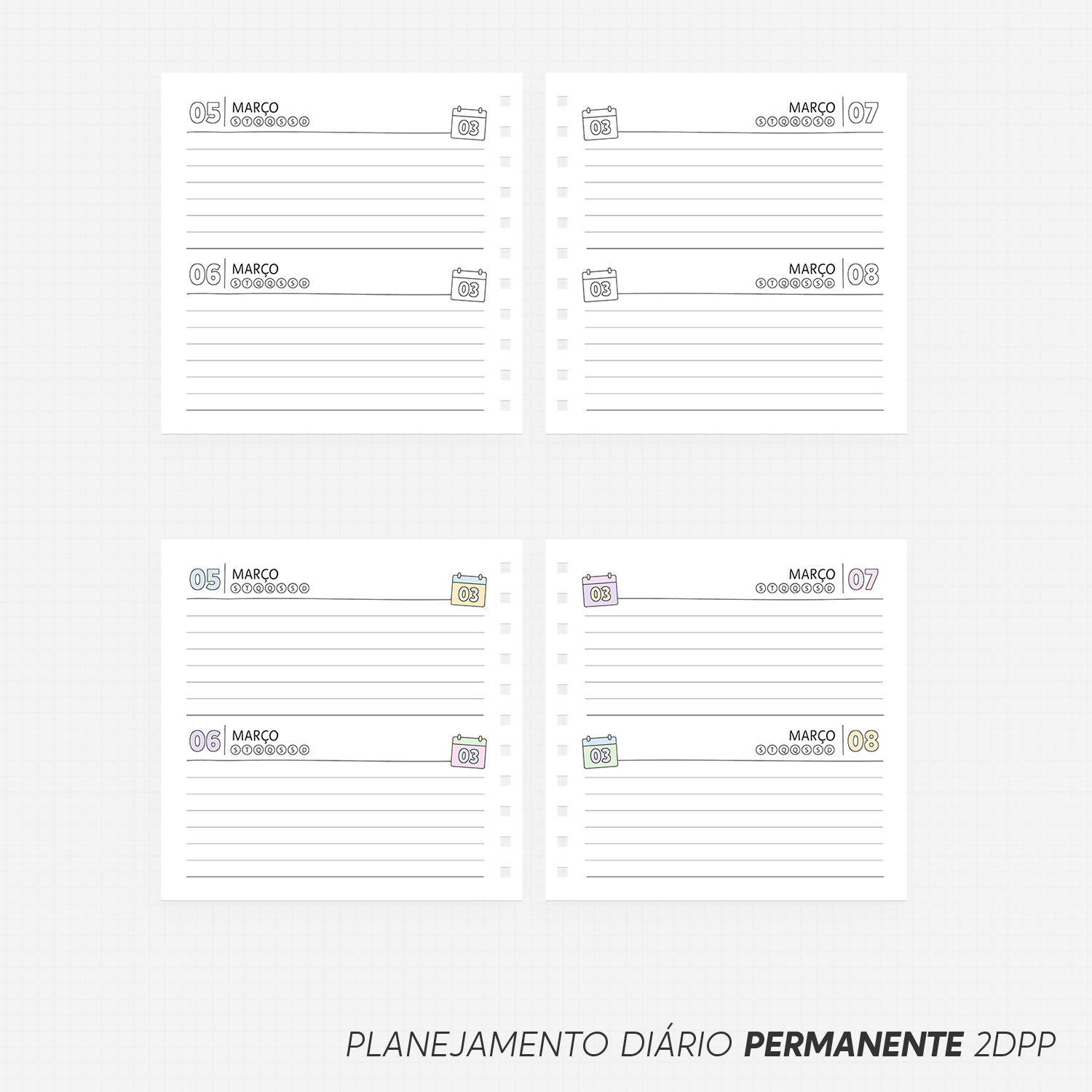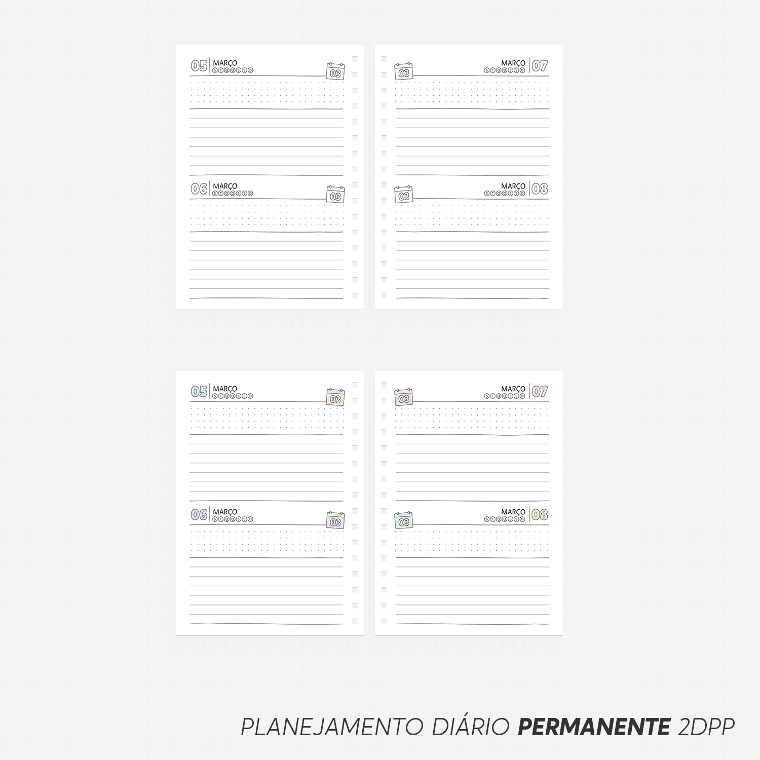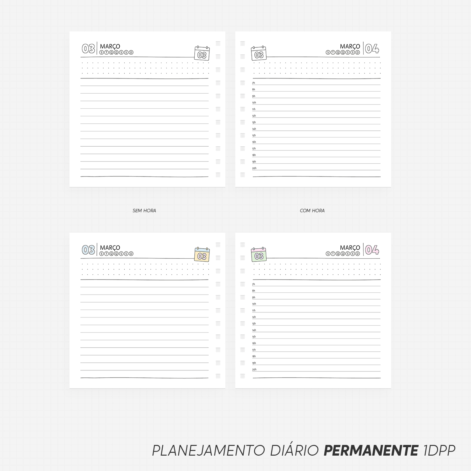- 1DPP (dia por página) – Coluna única sem hora