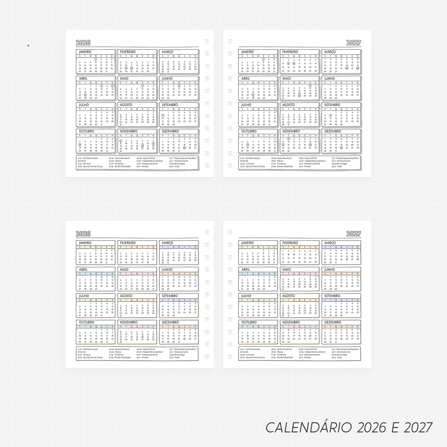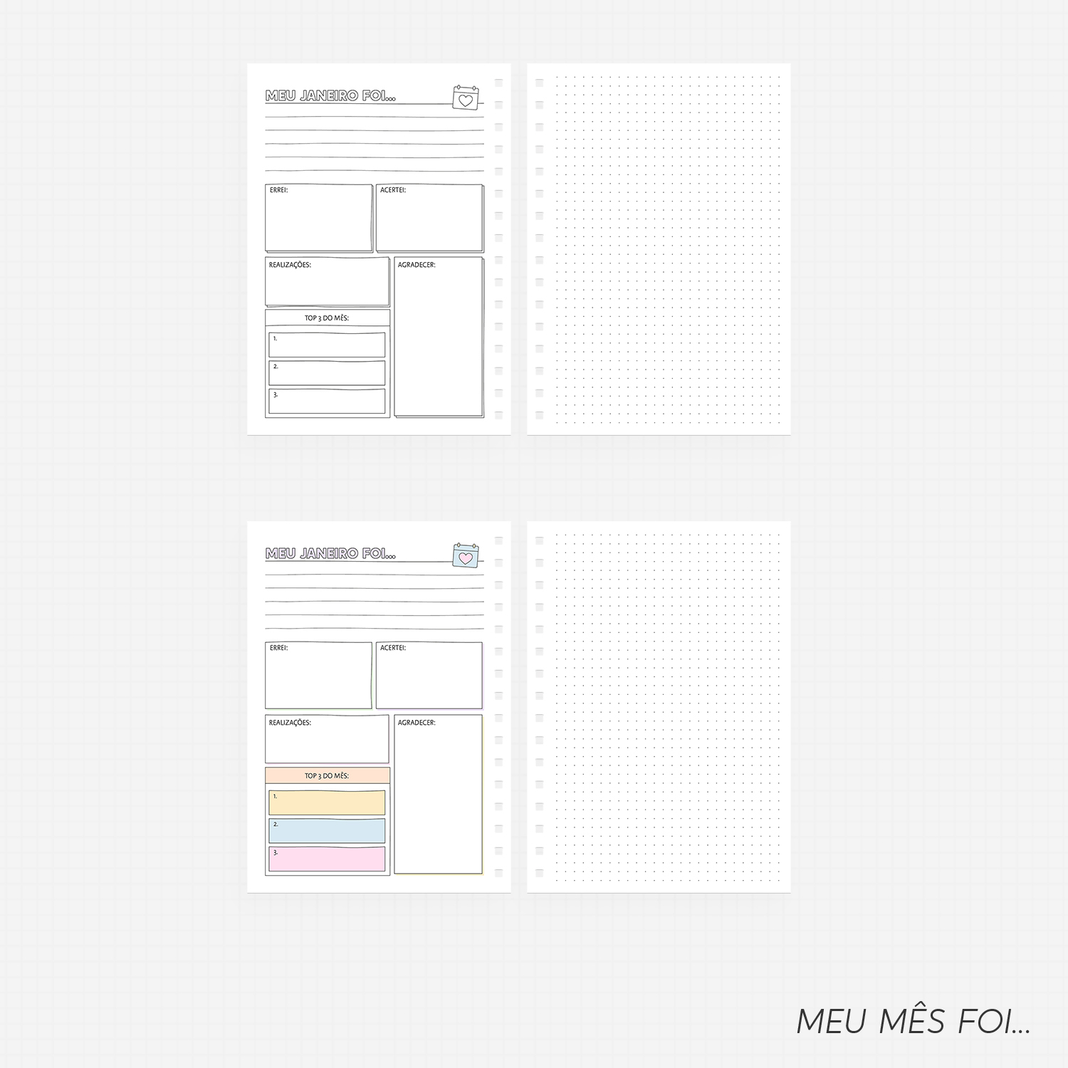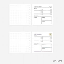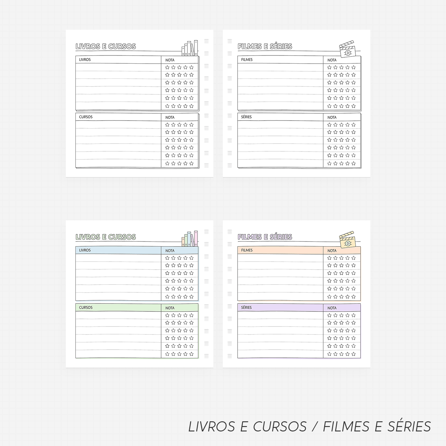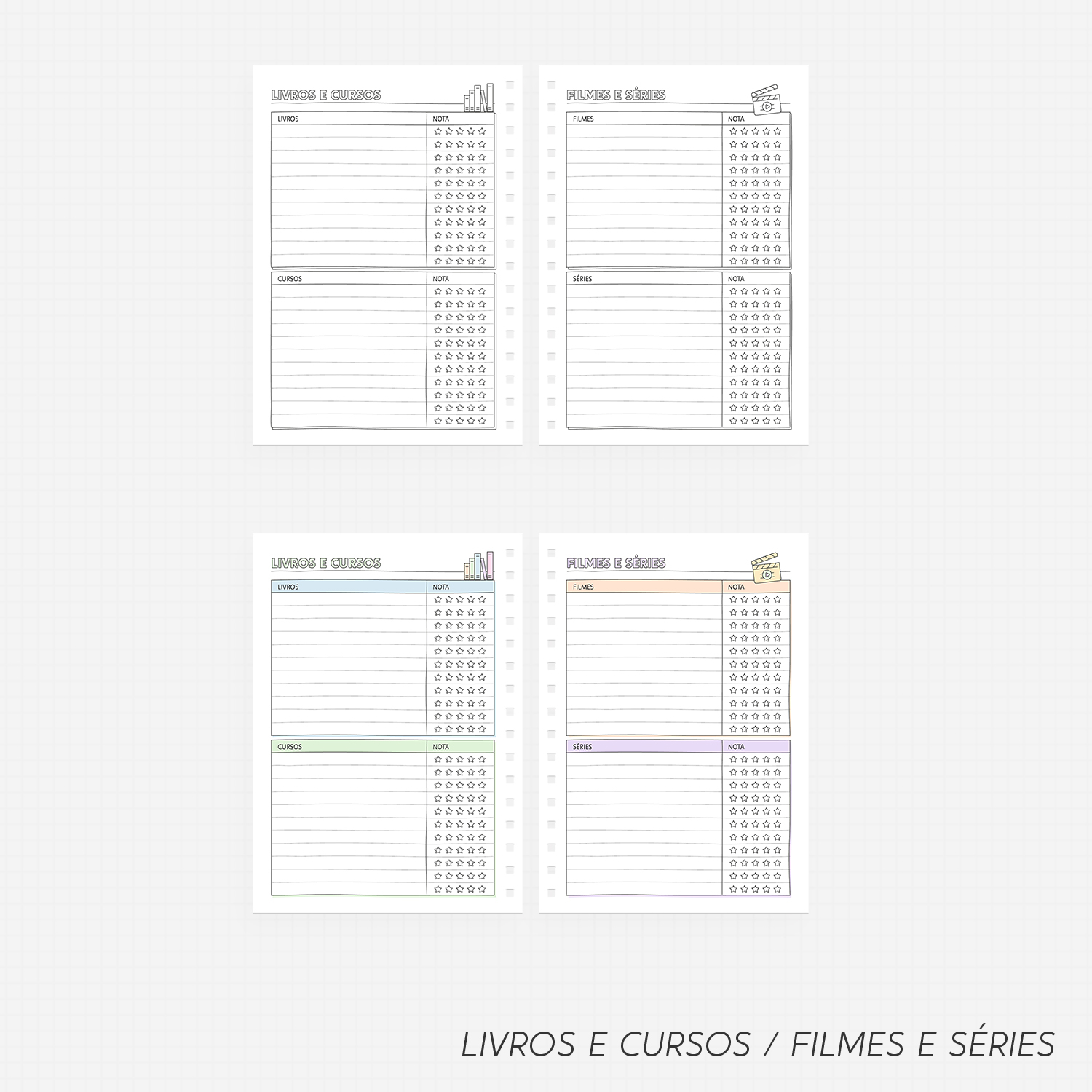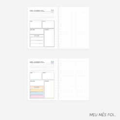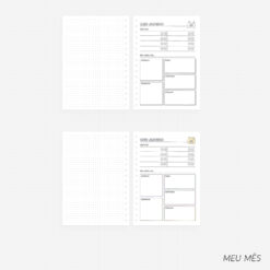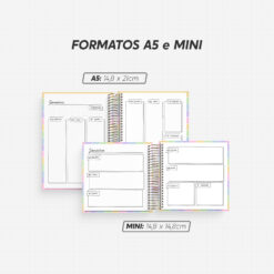 - Tamanho do miolo impresso: A5 (14,8cm x 21cm) e Mini (14,8cm x 14,8cm)