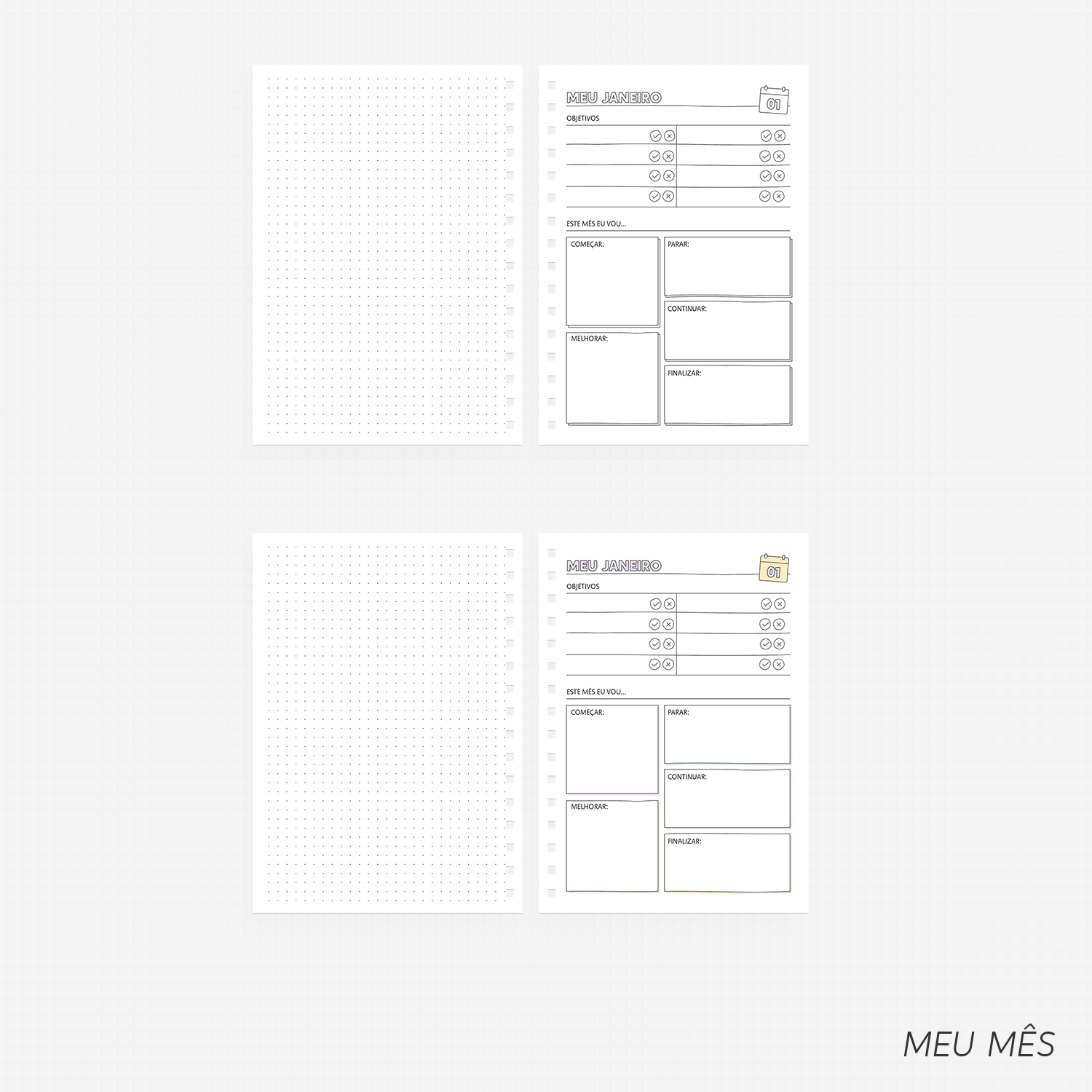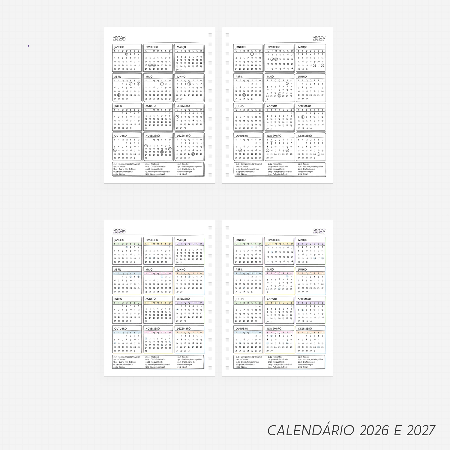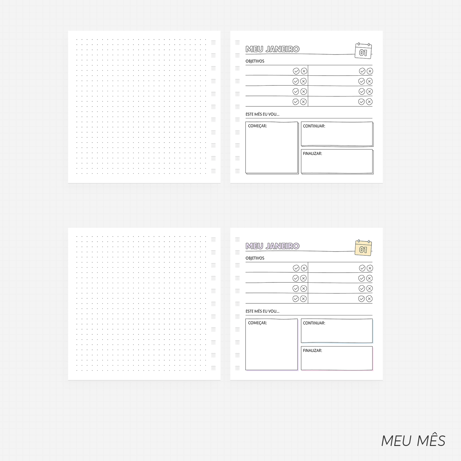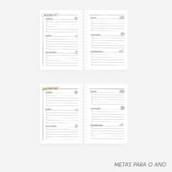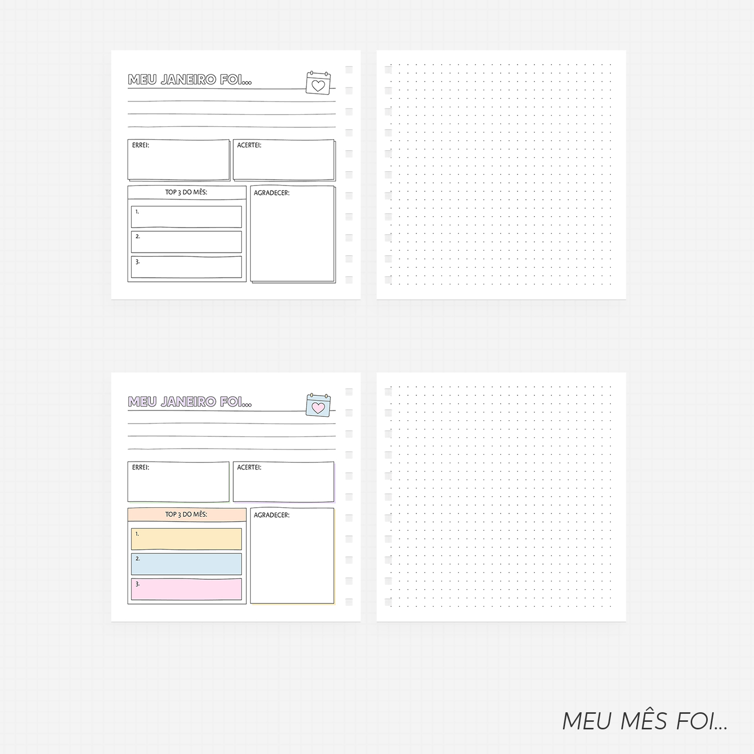 - Tamanho do miolo impresso: A5 (14,8cm x 21cm) e Mini (14,8cm x 14,8cm)