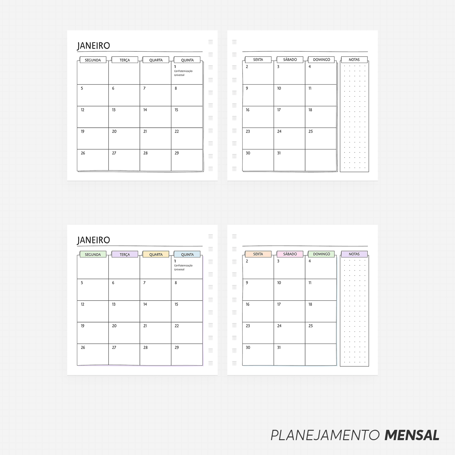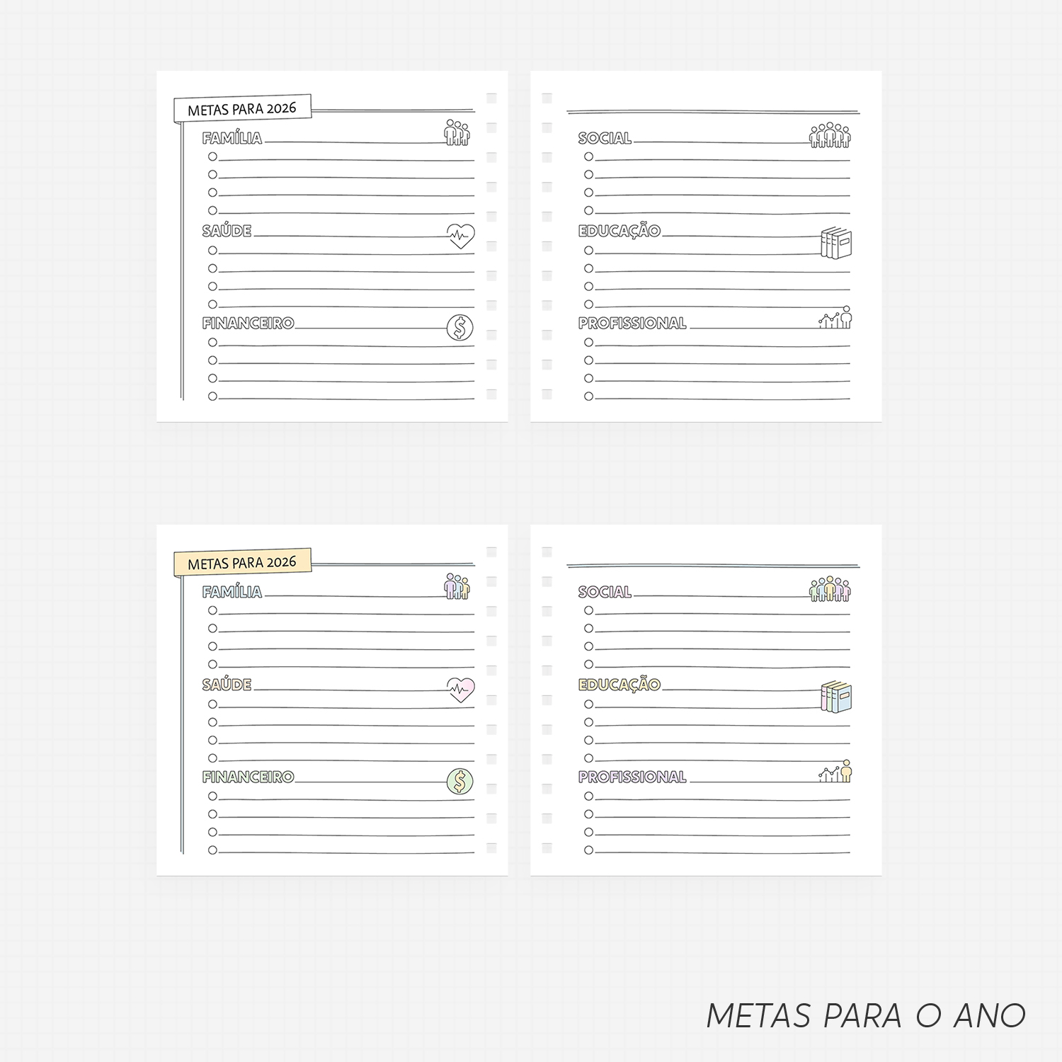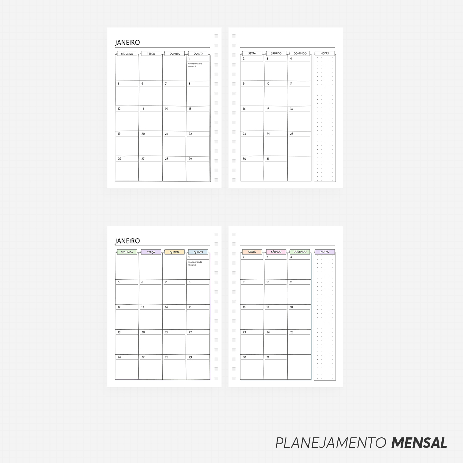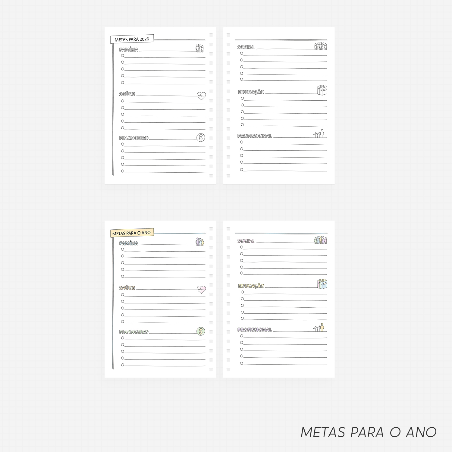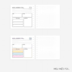 - Tamanho do miolo impresso: A5 (14,8cm x 21cm) e Mini (14,8cm x 14,8cm)