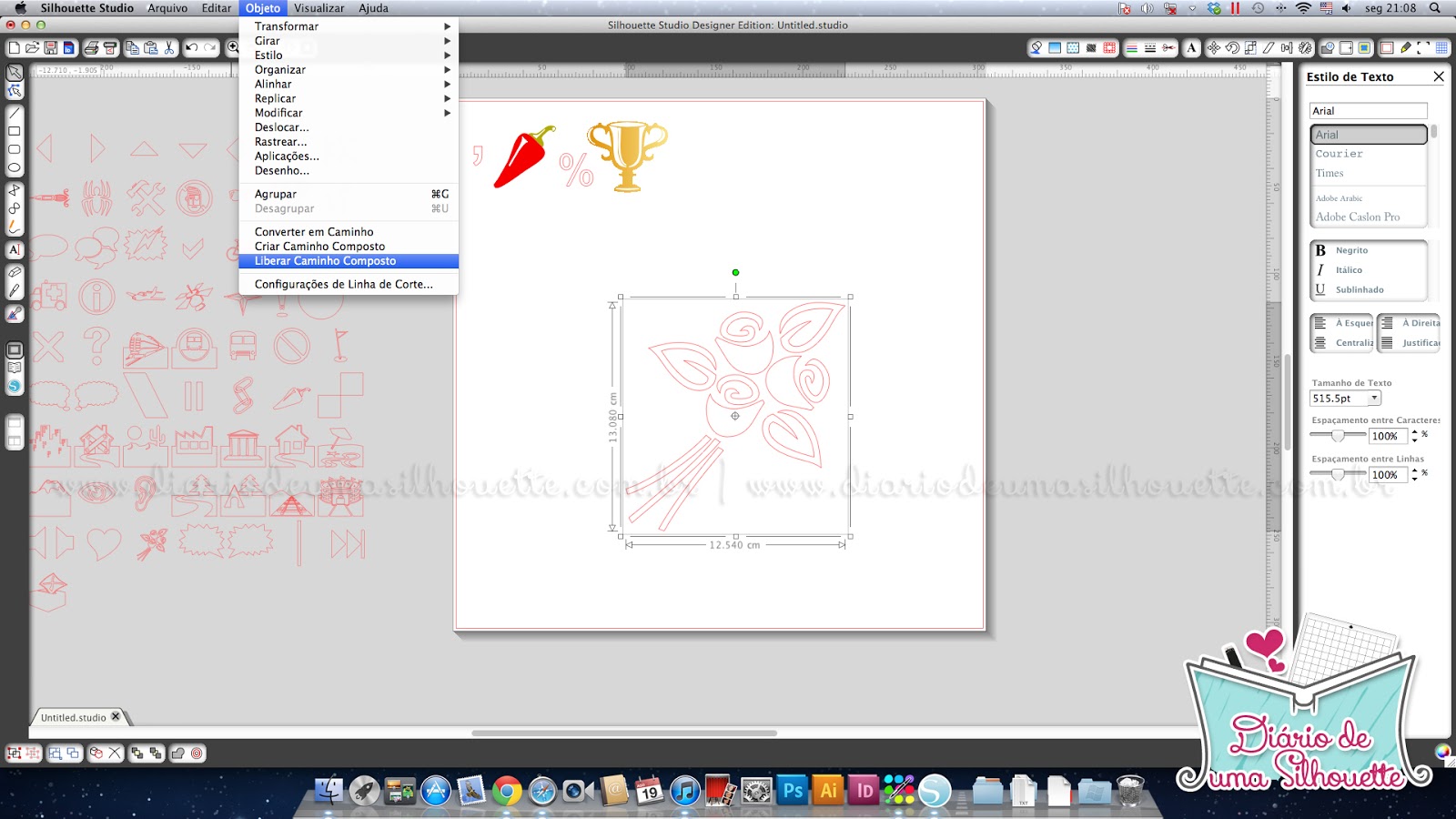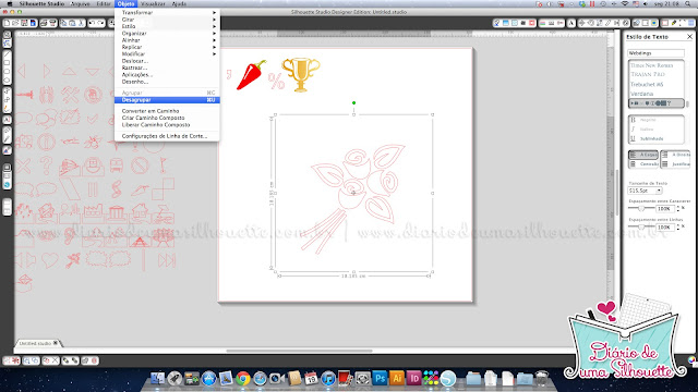 Para o exemplo, usei a letra “Z” com a fonte Webdings. Com a letra selecionada, vá até o meu objeto>desagrupar.